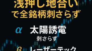 地合い2.5で押し目が深くなりやすい相場。αはノートレ(レーザーテック同値撤退)、βはアドバンテストが利確達成。太陽誘電は刺さらず。選択と回避が完全一致した一日の分析をまとめます。